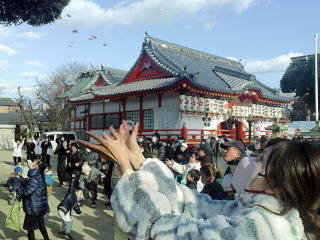 粟津のえべっさん(宵えびすの福もち撒き様子)